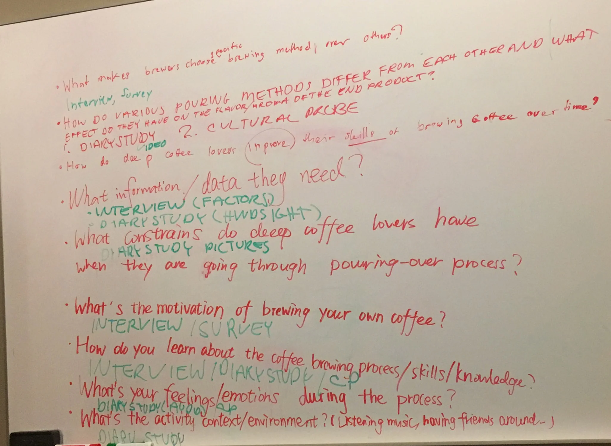 We recruited three users to conduct a diary study by using a University of Michigan School of Information email list and Facebook. We asked the participants to note their thoughts, feelings and emotions whenever they were brewing coffee at home. The diary study was motivated by the following research questions: