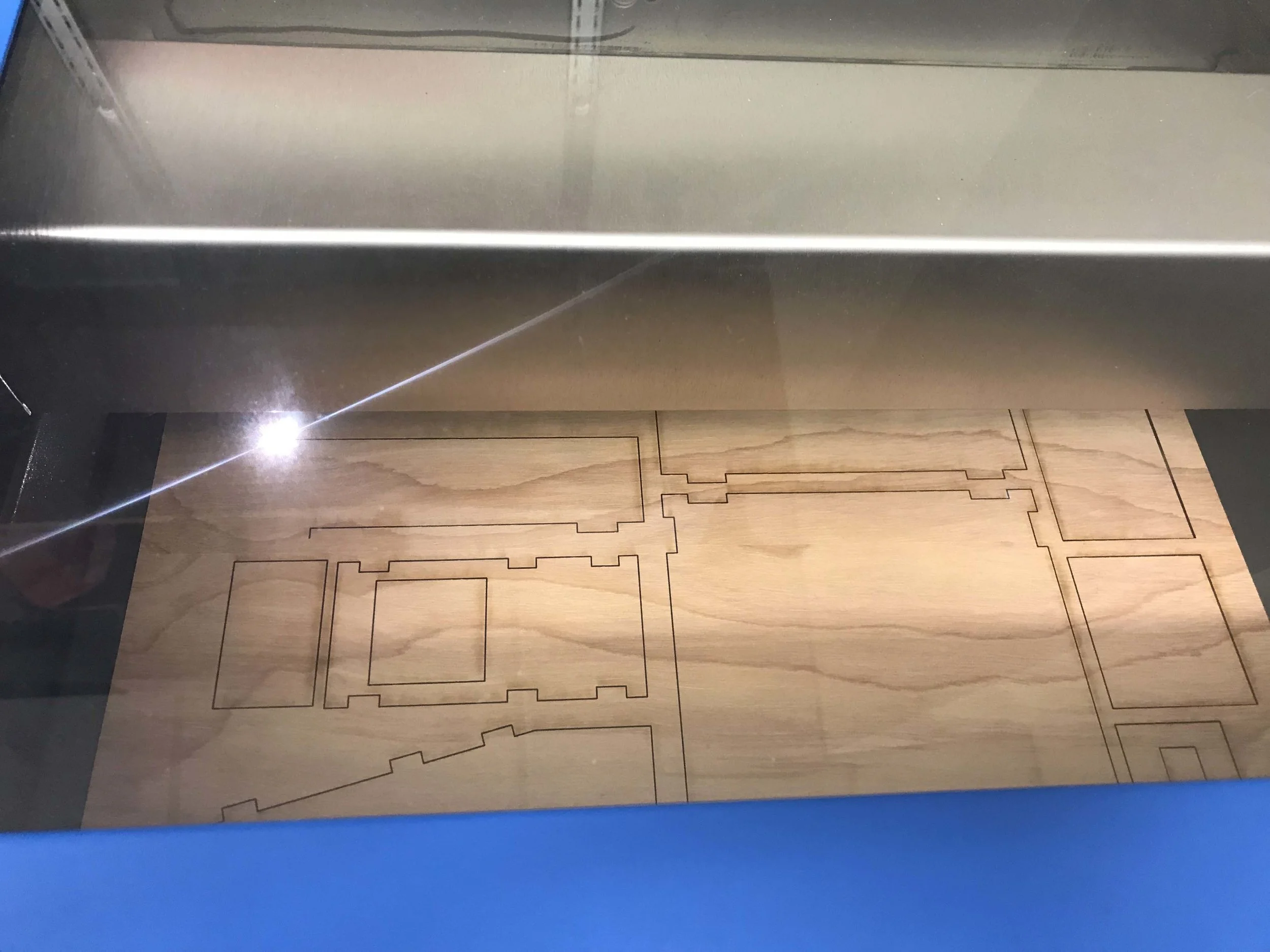 Cutting the plywood required quite a bit of trial and error, especially for cutting the dovetails. We learned that the laser cutter is not as precise as we first assumed, so the pieces often didn’t correctly fit together.