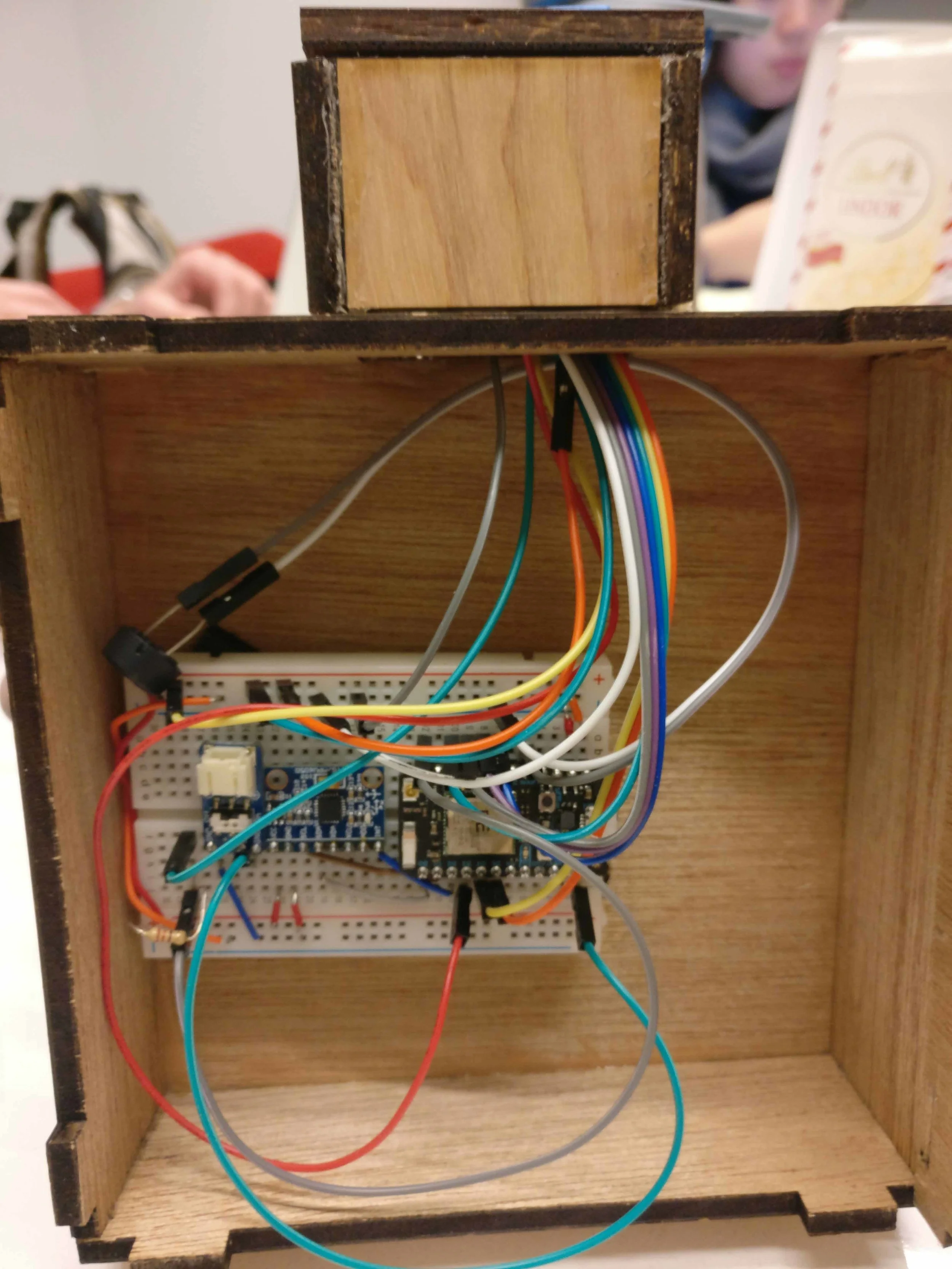We learned that it is difficult to show our prototype to a large audience because of the small LCD screen. We rehearsed the demo multiple times to ensure that we were familiar with all the steps. Ideally, we would have added more interactions and increased the precision to our demo, but with our time constraints, we ensured that we focused on presenting a working demo rather than failing at a more complicated one. We applied the same philosophy to the building process: We initially had a different casing in mind, but then realized that it might require a few iterations to get it right, so we decided on a simpler case design with the focus on getting it built in time.